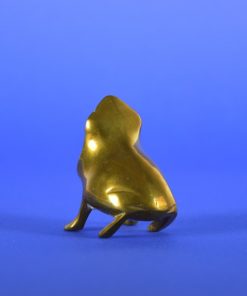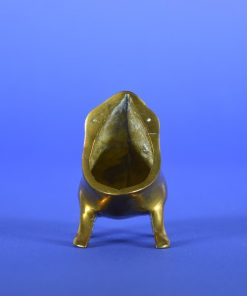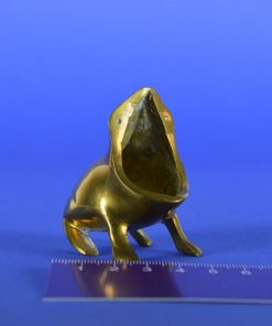 Asbakje in de vorm van een fraai vormgegeven koperen brulkikker met opengesperde bek.