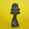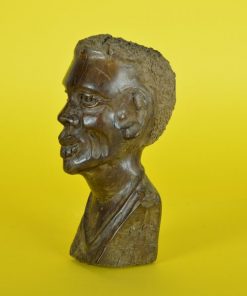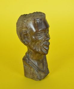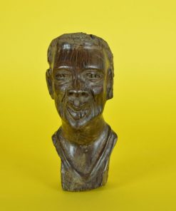Bijzonder sfeervolle hardhouten buste van een Afrikaanse man met een karaktervol, verweerd gezicht. Vermoedelijk gemaakt rond de jaren 1970. De overige items op de foto zijn te vinden bij de ‘andere suggesties’ elders op deze site.