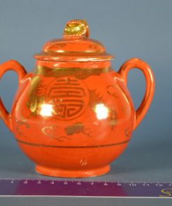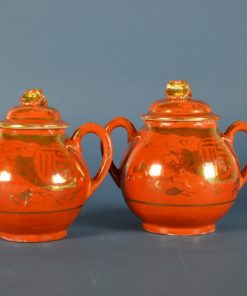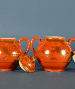 Antiek porselein suikerpot en melkkan oranje met gouden draken