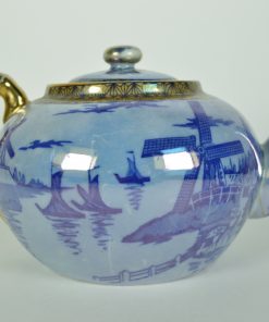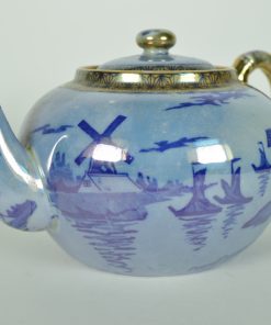 Antieke theepot, windmolens in parelmoerglazuur China 1930