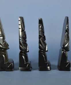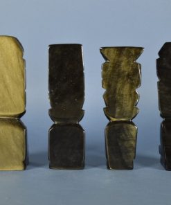 De Azteken waren een kunstzinnig indianenvolk. Zij geloofden in vele verschillende goden die aanwezig zouden zijn in elk levend ding. Deze godenbeeldjes zijn gemaakt van goud obsidiaan in de tweede helft van de 20e eeuw. Obsidiaan wordt gevonden in vulkanische gebieden en is ontstaan uit snel afgekoeld lava. De beeldjes zijn zwart en hebben bij een bepaalde lichtval een prachtige gouden gloed.