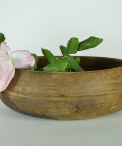 Deze prachtig vormgegeven middelgrote beslagkom van aardewerk is volledig geglazuurd, van top tot bodem. De schaal heeft een cognackleurige basis met daaroverheen een groenkleurig glazuur, niet overal met dezelfde dikte, waardoor de kleur lijkt te verlopen van beige naar kopergroen.