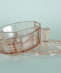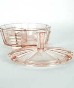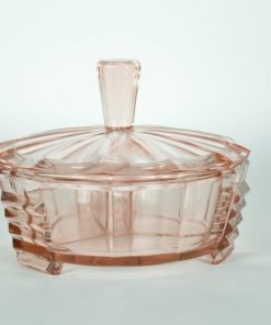 Bonbonniere Art Deco glas drievaks roze met deksel