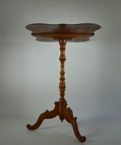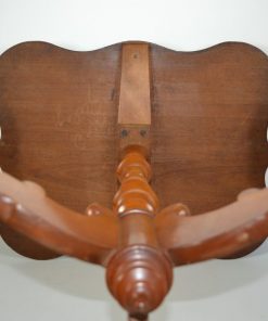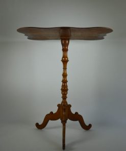 Handige, stabiele en toch lichte bijzettafel op hoge prachtig gedraaide driepotige voet. Het elegante blad heeft een aparte vorm.