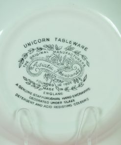 Prachtig diep bord in de lijn Asiatic Pheasant van Staffordshire England in lichtblauw op wit. De geschulpte rand is gedecoreerd met een bies van bloemen, guirlandes en een wafelpatroon. Vliegende fazanten en bloemen zijn het centrale motief.