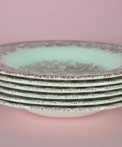 Diepe borden Royal Wessex met jachttafereel in roze | porselein set van zes