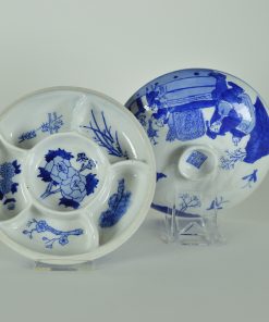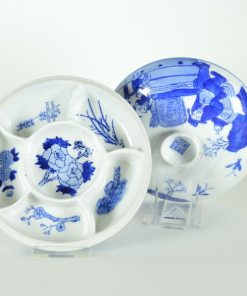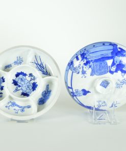 Dinerbord met deksel Chinees vijf vakken in wit en blauw aardewerk