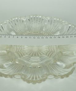 Feestelijk glazen eierbord voor het presenteren van (al dan niet gevulde) eieren. Plaats voor twaalf hele of halve eieren. Vermoedelijk gemaakt rond de jaren 1950.