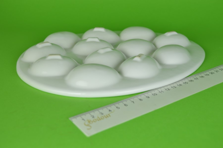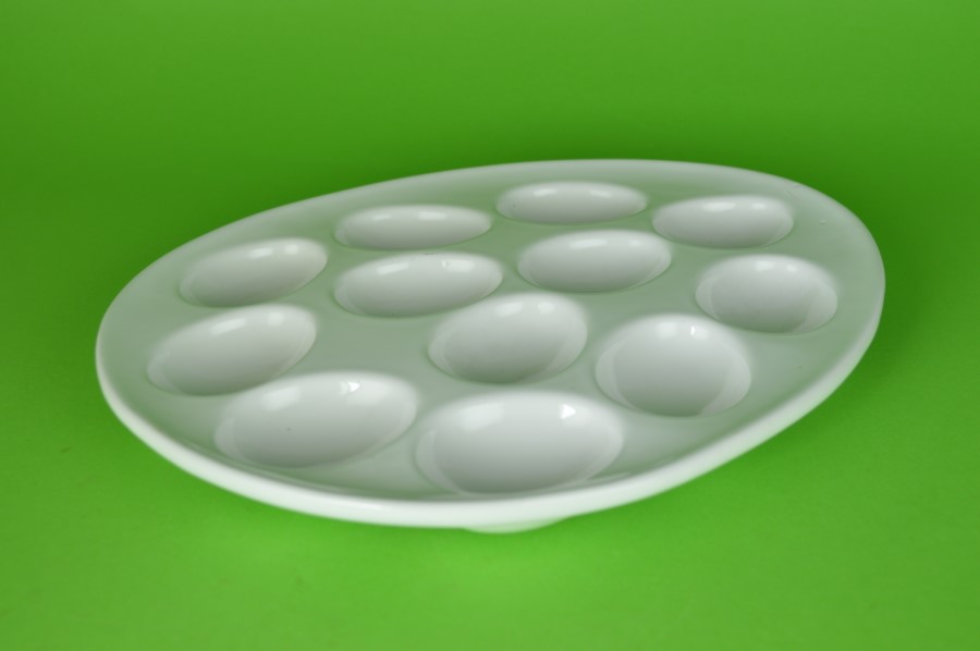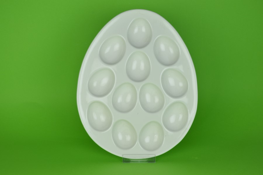 Feestelijk eierbord voor het presenteren van twaalf hele of halve, al dan niet gevulde, eieren.