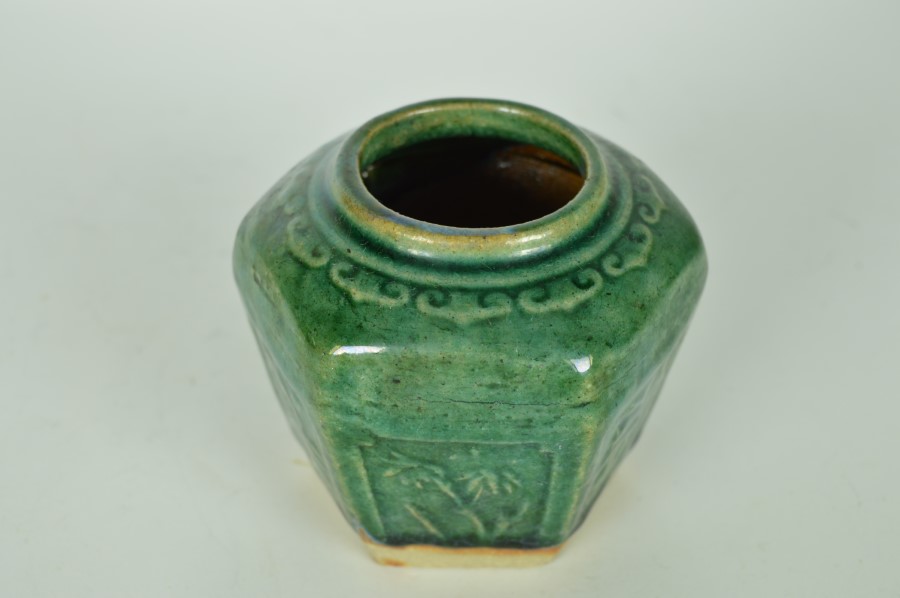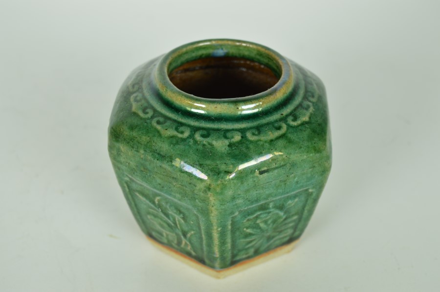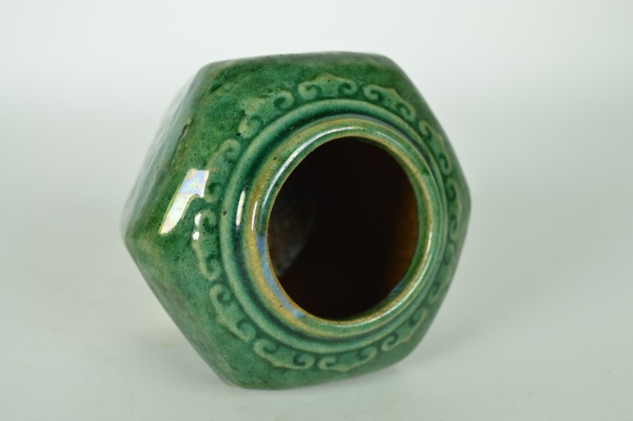 Gemberpot Shiwan groen geglazuurd zeskantig – Chinees aardewerk