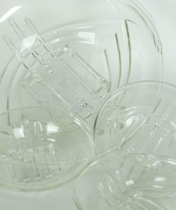 Glazen dessert schalen Art Deco – lijnenspel op vier voetjes