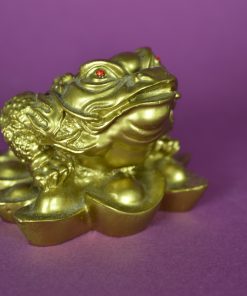 Gelukkige boeddha op kikker met geluksmuntjes | Feng Shui financieel gelukssymbool