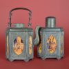 Diorama kijkkast met twee kraanvogels en pagode van kurk – rond