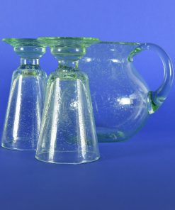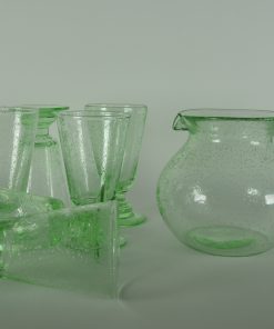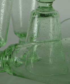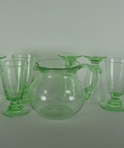 Groen glazen schenkkan met zes glazen coupes