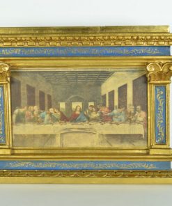 Het is een afbeelding van een scène uit het Laatste Avondmaal van Jezus zoals beschreven in de Bijbel.
