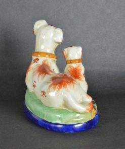 In het Engeland van Queen Victoria, werden dit soort porseleinen hondjes zeer populair omdat Queen Victoria een spaniƫl had. De visserij in sommige Nederlandse dorpen was minder lonend, hierdoor gingen veel vissers in dienst bij de schepen die voor de haringvangst naar de Shetland eilanden van Schotland voeren. De door pottenbakkers van Staffordshire vervaardigde beeldjes werden immens populaire souvenirs bij de Nederlandse vissers. Zo kwamen de hondjes op vele schoorsteenmantels en dressoirs van de vissersgezinnen en zeelieden terecht. (Bron:mijnzuiderzee.nl)