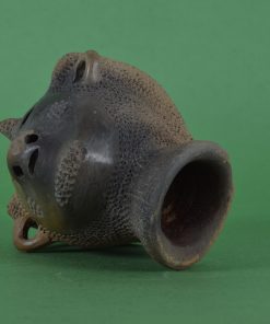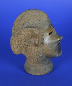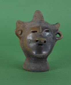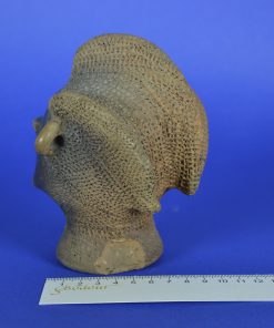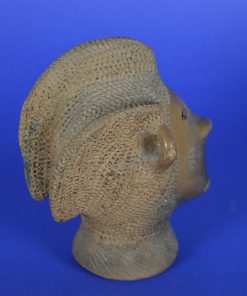 Dit bijzondere, karaktervolle hoofd heeft alle kenmerken van keramieke kunst van de Kwoma people uit Papoea nieuw-guinea, Washkuk Hills, Middle Sepik River regio. De kleur van de basis grondstof klei, is een bijzonder oranjebuin en zwart en het gezicht heeft een heeft een mooie zachte glans. De aangebrachte stippen en versiering in de hals doet denken aan de Australische Aboriginals art. De oren zijn prachtig vormgegeven. De hals is dik afgewerkt. Het hoofd is hol van binnen.