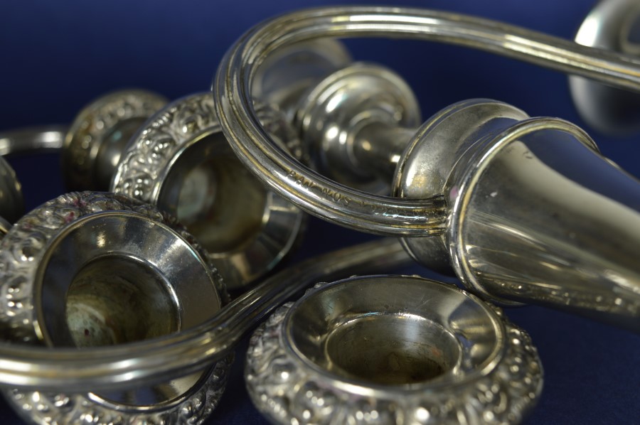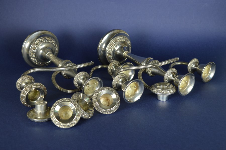 Kandelaars driearmig – Lanthe England 1958 – verzilverd – set van 2