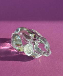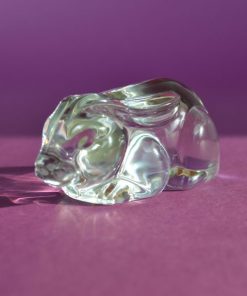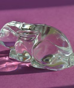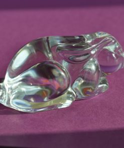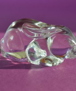 Kristallen presse-papier in de vorm van een konijntje van Nachtmann in de lijn Princess house Pets. Fonkelende prisma’s maken de lijnen van dit vloeiend vormgegeven konijntje levendig, het lijkt vloeibaar maar het is kristal.