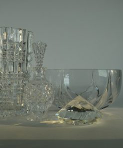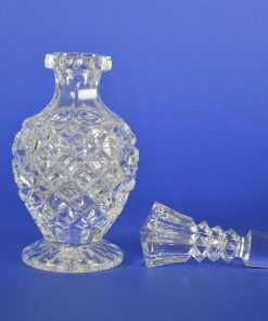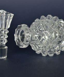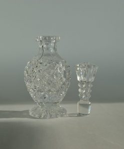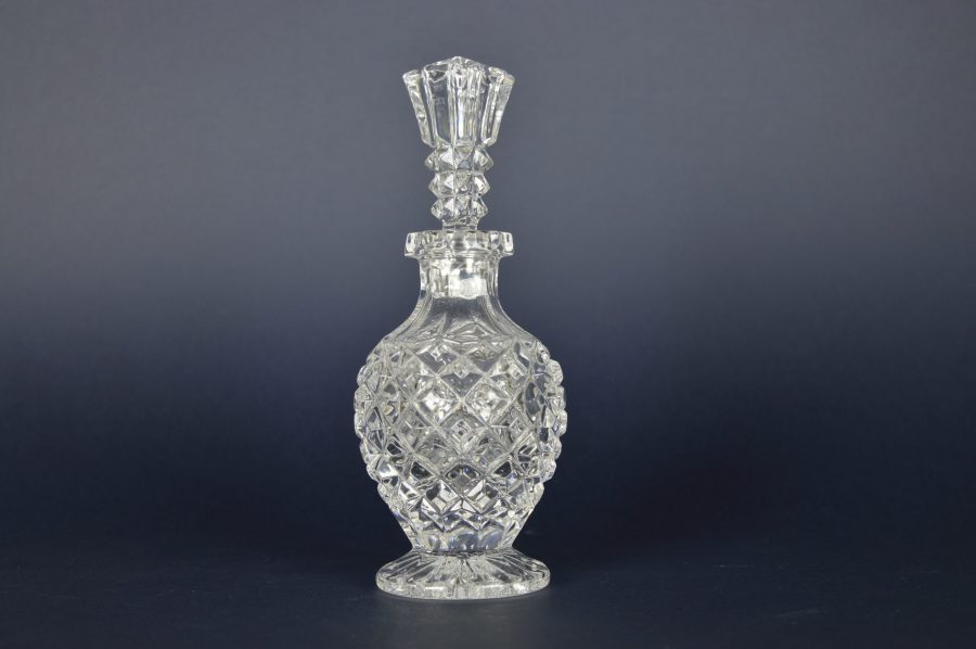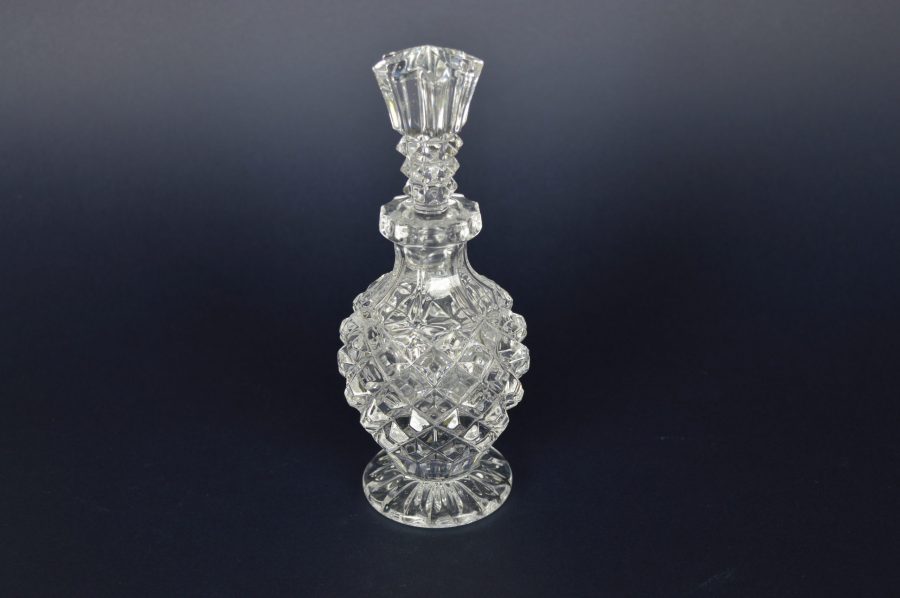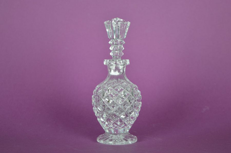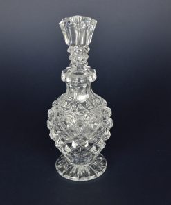 Dit kristallen flesje met dop heeft de vorm van een ananas. Het kan gebruikt worden voor allerlei soorten vloeistof, olie of parfum.