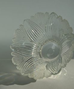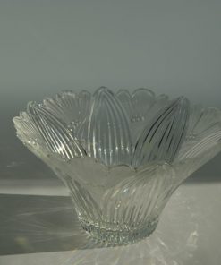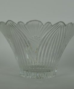 Kristallen vaas of schaal met gezaagde rand. Bijzonder zijn de matte ondoorzichtige blaadjes waarin de besjes doorzichtig zijn uitgespaard tussen de zes generfde bladen. Ook leuk als schaal voor fruit of als kaarsenhouder met een brede kaars.