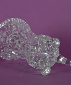 Schattig, fonkelend vaasje met wijd uitlopende kelk. Onder het bolle buikje staat het op drie voeten met omkrullende uiteinden. Bijzonder zijn ook de ingeslepen bloemen en wafels waardoor de vaas een levendige indruk maakt. Met of zonder bloemen prachtig.