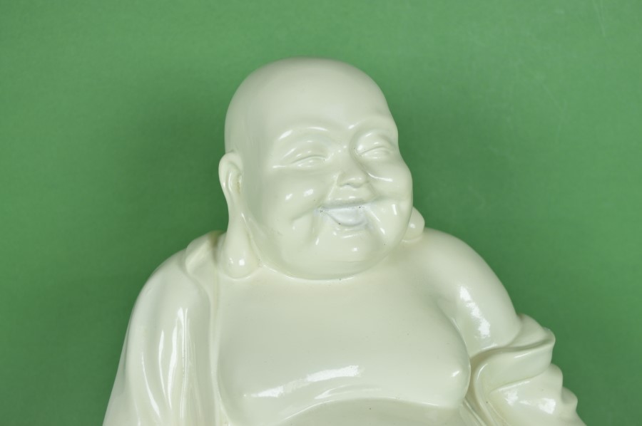 Chinese families hebben deze Boeddha vaak in hun huis staan met het gezicht naar de voordeur om geluk en voorspoed te verwelkomen. De lachende Boeddha staat voor geluk, blijdschap, succes, welvaart en voorspoed. (Bron: boeddhashop.nl)