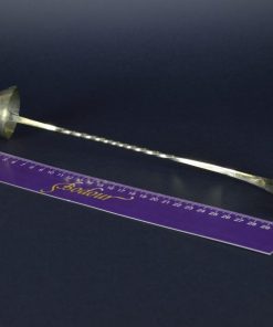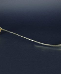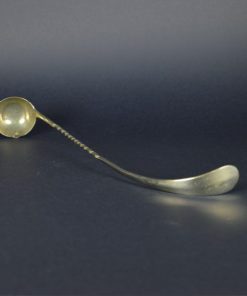 Lange Venetiaans verzilverde lepel, met een rond, diep bakje met schenktuit waaraan een gebogen steel is bevestigd. Door deze vorm blijft de lepel in de daarvoor bestemde kom staan. De lepel heeft een deels gedraaide steel. Het uiteinde is breed en plat waardoor hij lekker in de hand ligt. Zeer geschikt om uit een diepe kom sap en fruit zoals kersen te scheppen, Venetian Silver staat ingegraveerd op de achterzijde.