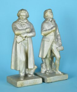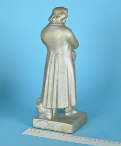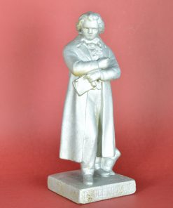 Zilverkleurig gipsen beeld ten voeten uit van de componist Ludwig van Beethoven. De overige beelden op de foto zijn elders op deze site te bekijken.