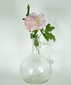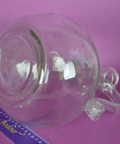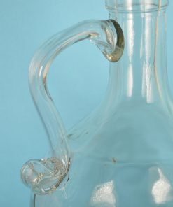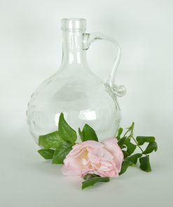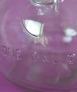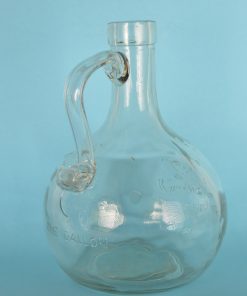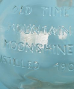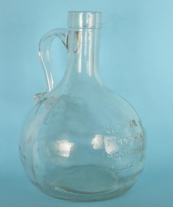 Super leuke originele authentieke one gallon fles. Aan het nonchalant aangehechte, zwierige stevige oor met krul kan een gallon hangen, een US gallon is 3.7 liter. Op de fles staat het geschreven in glas: one gallon – Old time mountain moonshine distilled 1904. En als je goed kijkt is de onderzijde van het hengsel gehecht boven een glazen tekening van een klavertje vier met steel. Het bijzonder stevige glas heeft hier en daar een belletje.