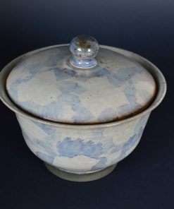 Opberg pot met deksel geglazuurd aardewerk in grijs en blauw