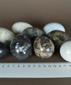 Aangegeven afmeting betreft het grootste ei. Gewicht is de 9 eieren tezamen.