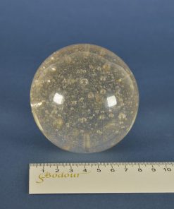 Presse papier van kleurloos glas met luchtbelletjes als de nachtelijke hemel met de ontelbare sterren of als sneeuwvlokjes in een sneeuwbui.