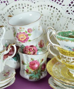 Tags: Goudkleurig, Koffiethee, PorseleinAardewerkKeramiek, Roze, Servies, Wit