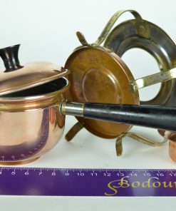 Sauspan met waxine-rechaud van rood- en geelkoper