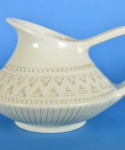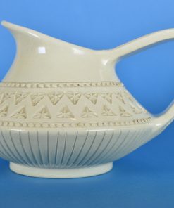Schitterend vormgegeven schenkkan, meer nog een kunstobject dan een gebruiksartikel. Gedecoreerd met een band van driehoeken, sterren en een dubbele parelrand. De bekende kunstenaar en keramist Bruno HUGO, werkte van 1952 tot 1980 in de Republiek San Marino Italië. Aan de onderzijde getekend: HUGO RSM.