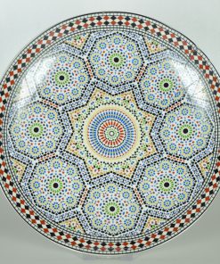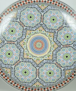 Grote schotel van Marokkaans porselein gedecoreerd in een meerkleurig mozaïek motief. Zie hier de Marokkaans soepterrine gedecoreerd in een meerkleurig mozaïek motief.