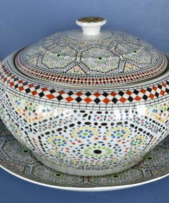Soepterrine gedecoreerd in een Marokkaans meerkleurig mozaïek motief. Aan de onderzijde het stempel BAMA. De schotel of het onderbord is hieronder te vinden bij de andere suggesties.