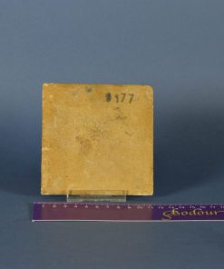 Deze oude aardewerk tegel toont een konijn of haas in gestrekte draf tussen gekleurde bloemen en groen. Gemaakt in het oude Perzië, het tegenwoordige Iran. De basiskleur is okerachtig beige-zand.