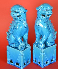 Tempelleeuwen zijn wachters die de wacht houden bij de deur en het huis bewaken. Vaak staan ze buiten bij een voordeur. De ene is vrouwelijk -yin- Ā zij bewaakt de mensen in huis, de andere mannelijk āyang- hij bewaakt het bouwwerk zelf, de buitenkant. De mannelijke houdt een bal onder zijn poot, die de wereld voorstelt. De vrouwelijke een babypuppyleeuw, wat de natuur van het voedende verzorgende aspect voorstelt. Men plaatst de vrouwelijke leeuw aan de linker en de mannelijke aan de rechterkant.