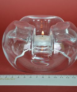 Bescheiden, stevig theelicht uit één stuk glas. Het licht van het kaarsje komt er prachtig doorheen. De warmte wordt goed vastgehouden en doorgegeven.