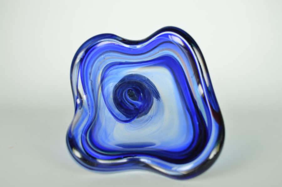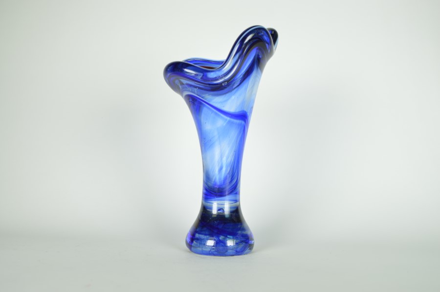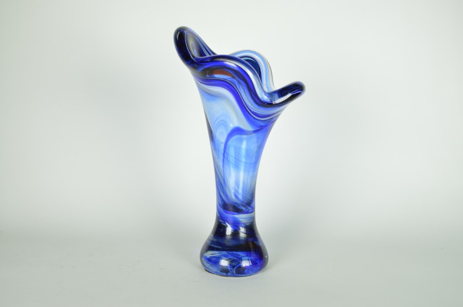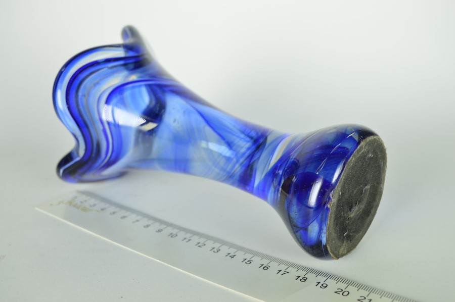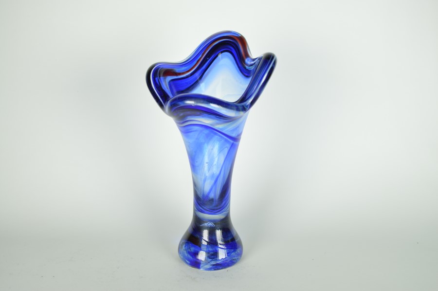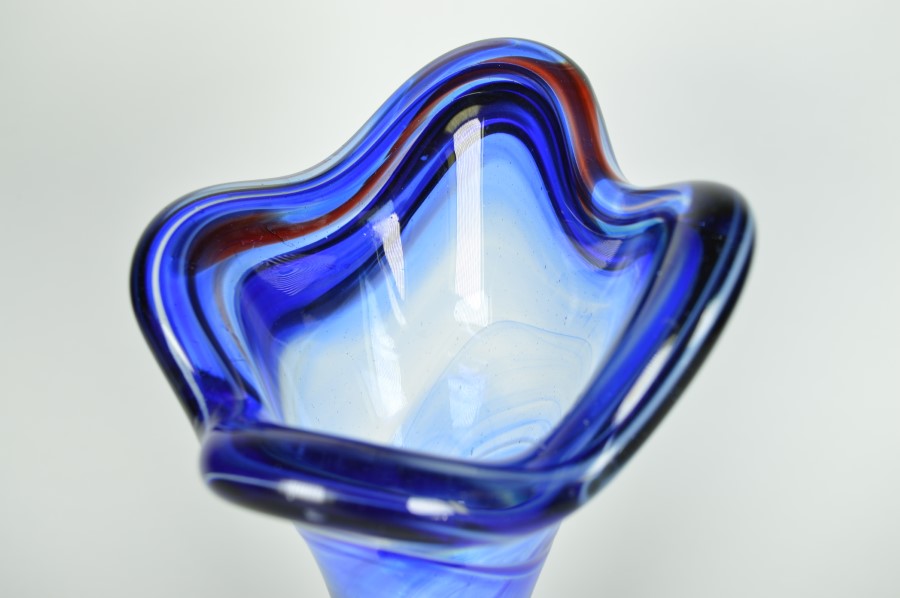 Vaas glas blauw met subtiele rode lijn – Murano Italië