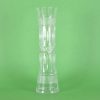 Zware vaas van ruim drie kilo kristal met een patroon van ingeslepen waaiers en wafels. Zes rijen verticale strepen scheiden zes vlakken waarbinnen een verticale rij van twee facet geslepen ruitvormen boven elkaar zijn aangebracht, waarbinnen een ingeslepen cirkel. Bovenin eindigend in een waaier. Aan weerszijde een wafeltjespatroon. Langs de bovenrand een geschulpte bies. De bodem heeft een diameter van 10.5 cm. Aan de versiering is te zien dat het gaat om een vaas uit de jaren rond 1950.