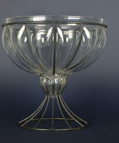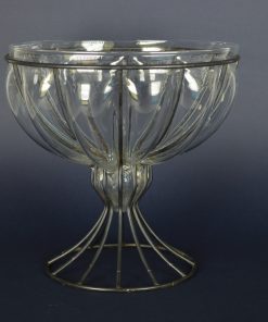 Koekdoos – schaal met deksel in paars glas met reliëfrand in goud