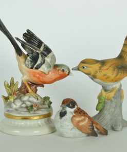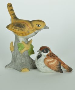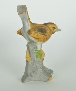 Vogel geelbruin op grijze tak – biscuit porselein Wren
