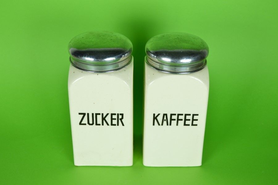 Voorraadbussen Duits Kaffee en Zucker – aardewerk en chroom