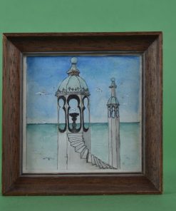 In een landschap van sneeuw en ijs, staat voor een iglo, een inuit kind in een zonnige gele jas en muts afgezet met een dikke rand bont met zijn poolhond. Het in overwegend turquoise en blauw beschilderde bord heeft een rand van besneeuwde naaldbomen en bessen. Het is een exemplaar uit de serie ‘onze kinderen’. Elk bord vertegenwoordigt een kind in klederdracht uit een van de landen van de wereld. Het is geproduceerd tussen 1977 en 1988 door Villeroy & Boch in opdracht van Unicef. Leuk voor een kinderkamer of voor op een school.