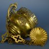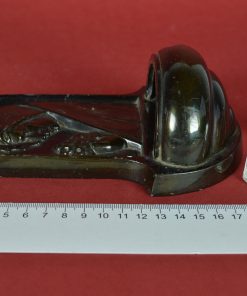 Materiaal: metaal en glas, glazuur met een klein glimmertje brons