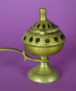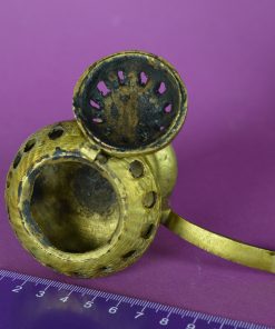 In deze sfeervolle houder met deksel wordt wierook gebrand. De houder staat op een voet en kan met de greep makkelijk brandend worden meegedragen. Een prettig hulpmiddel om het huis te reinigen. Mogelijk Russisch-Orthodox.