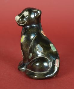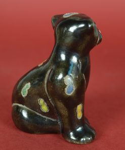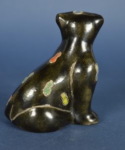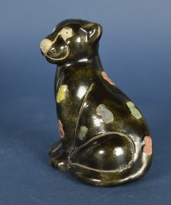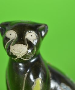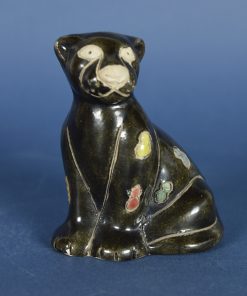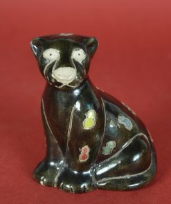 Prachtige zwarte baby panter met lekkere grote poten handgemaakt uit Afrikaanse aarde. Beschilderd in een prachtig bruin-zwart-blauw. De veel kleurige vlekken zijn omrand met een ingekerfde lijn. Het is een exemplaar uit de serie van Zuid-Afrikaanse Studio Raku Art Pottery animals, die zijn gebakken volgens de oude Japanse raku stook methode en door de maker gesigneerd.